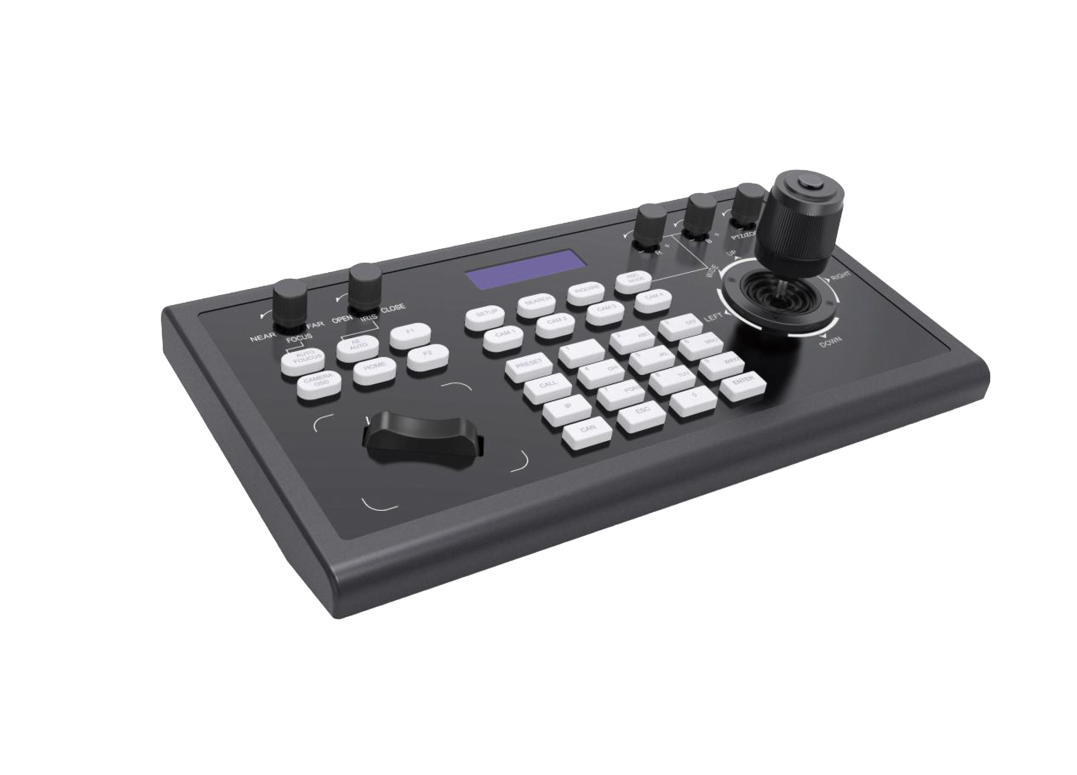 A professional-grade PTZ camera controller built for high-precision environments. It delivers smooth, real-time pan, tilt, and zoom control through a 4D variable-speed joystick with effortless responsiveness. Supporting ONVIF, VISCA, and PELCO protocols over IP or Serial, it integrates seamlessly with multi-brand PTZ ecosystems and scales up to 255 cameras. Powered by PoE with a blue-lit LCD display, the ProCAM-CTRL provides instant visual feedback on modes, presets, and parameters—ensuring confident, uninterrupted operation. Its rugged metal body, ergonomic silicone keys, and smart learning functions make it ideal for auditoriums, NOC/SOC/CCC, broadcast rooms, and high-demand control setups.