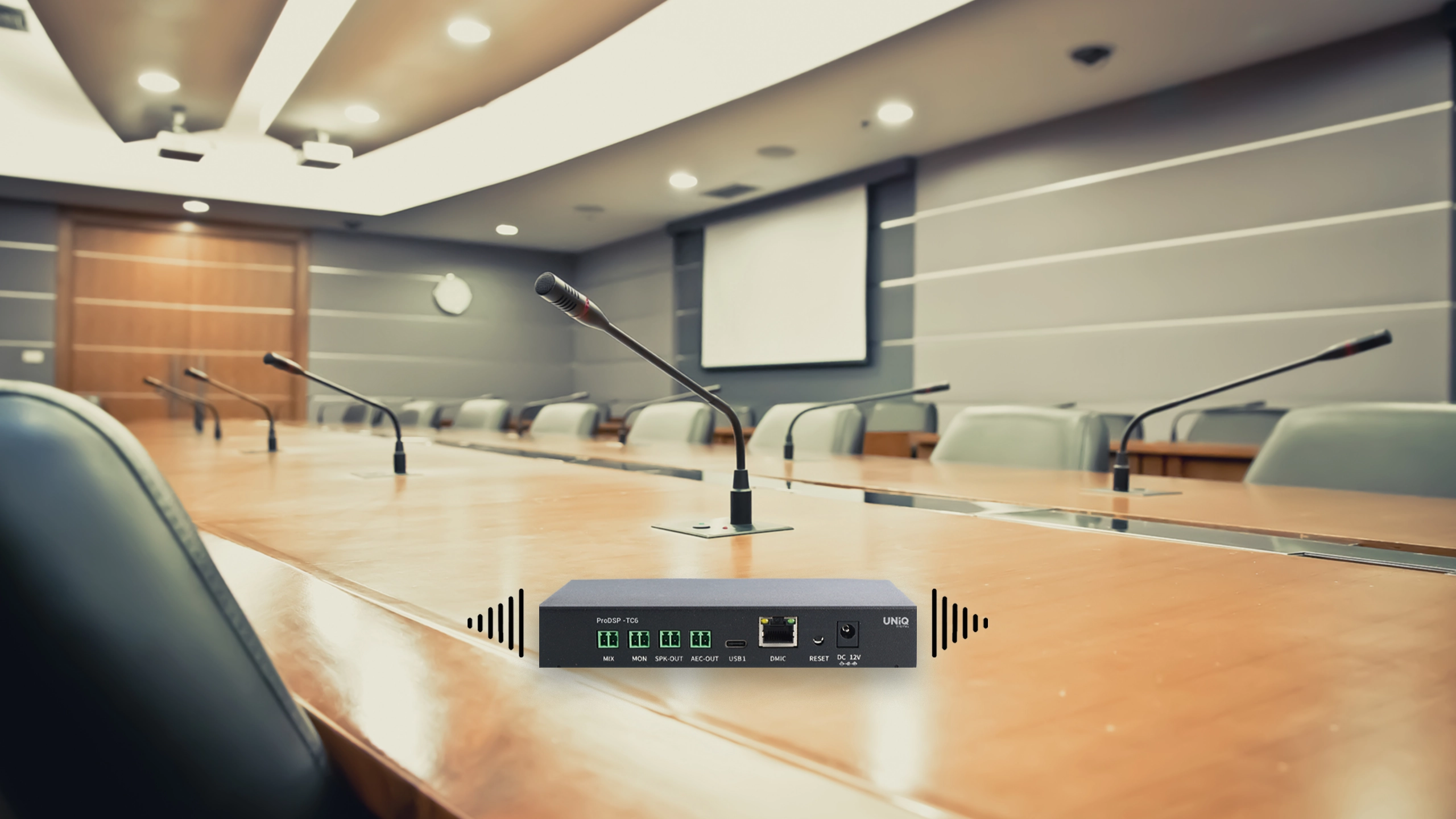 This processor integrates advanced technologies, including Automatic Noise Suppression (ANS), AutomaticGain Control (AGC), and Automatic Echo Cancellation (AEC). Additionally, it employs cutting-edge digital audio technologies such as automatic equalization, intelligent microphone mixing, and anti-reverberation.