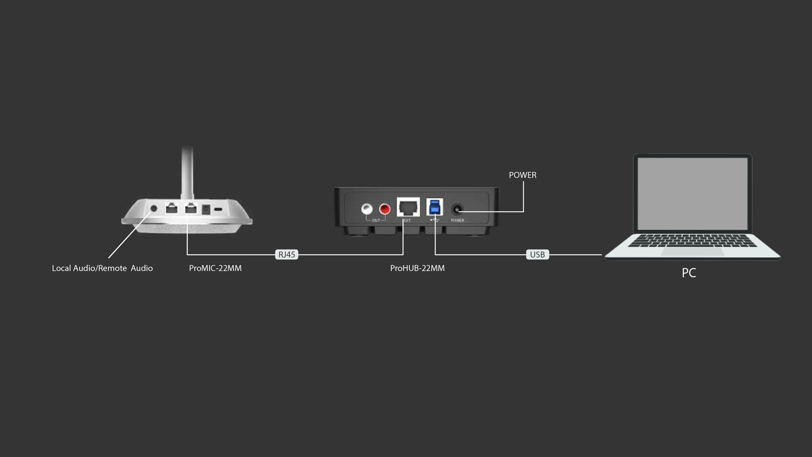 Designed to work with the ProMIC-22MM and a wide range of devices, the ProHUB- 22MM ensures a smooth and reliable connection for professional audio-visual environments