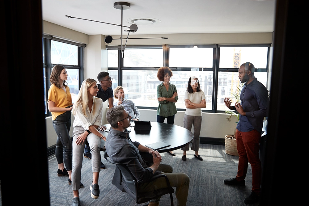 Foster meaningful interactions by connecting employees and stakeholders on a unified platform. Our advanced AV systems empower hybrid work cultures, ensuring everyone has a voice and is part of the conversation.
